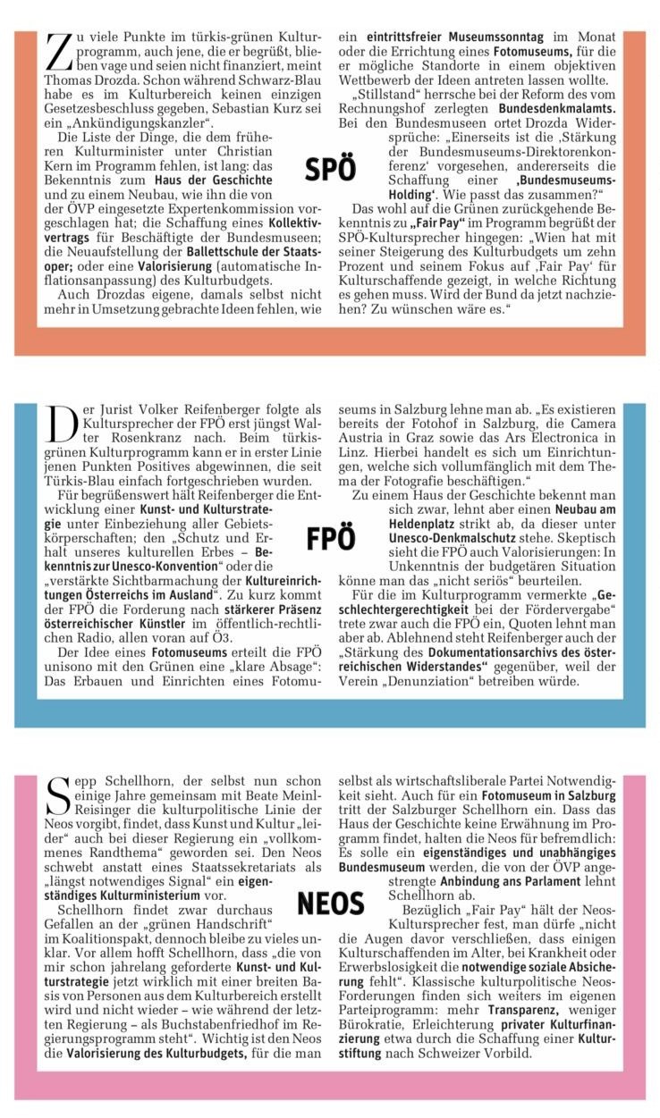 In der heutigen Ausgabe des Standard (07.02.20) unter dem Titel "Kulturpolitik jenseits der Regierungsbank" konnte ich die freiheitliche Sicht auf den Themenbereich "Kunst und Kultur" darlegen.